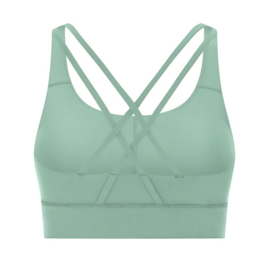 Women's "Cardio District X FIT" Light Green Strappy Criss-Cross Sports Bra